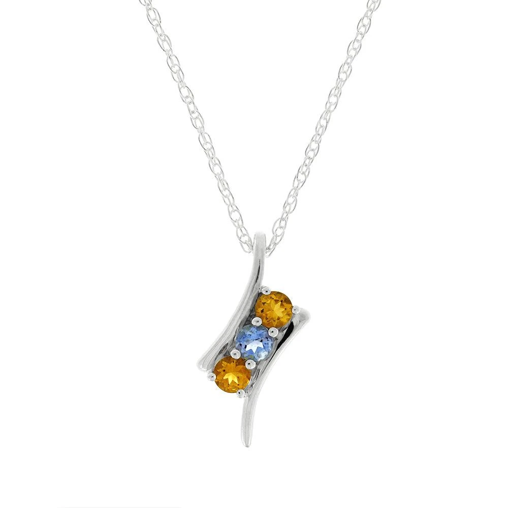 This gorgeous, three-stone necklace can be made to order with whatever three stones you’d like. It is shown here featuring a combination of citrine and aquamarine, the November and March birthstones.