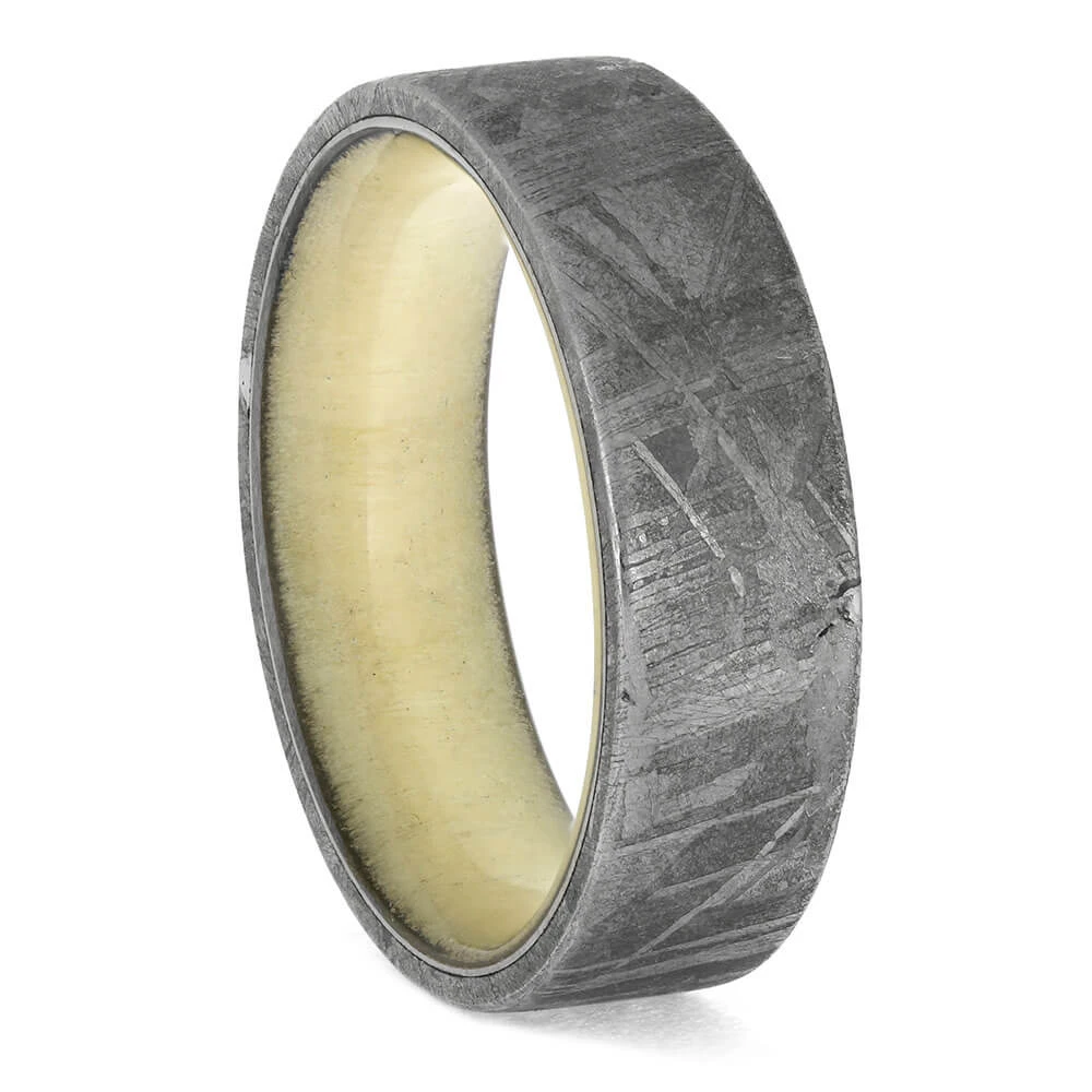 Aspen wood from the Rocky Mountains and Gibeon meteorite from outer space combine for a stunning, nature-inspired wedding band design. This handmade ring is in stock in size 10 and ships in 1-3 days!