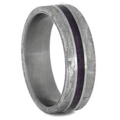 A gorgeous round cut amethyst sits on this meteorite engagement ring surrounded by a brilliant moissanite halo. Present her with this 14k white gold ring set with her favorite color.