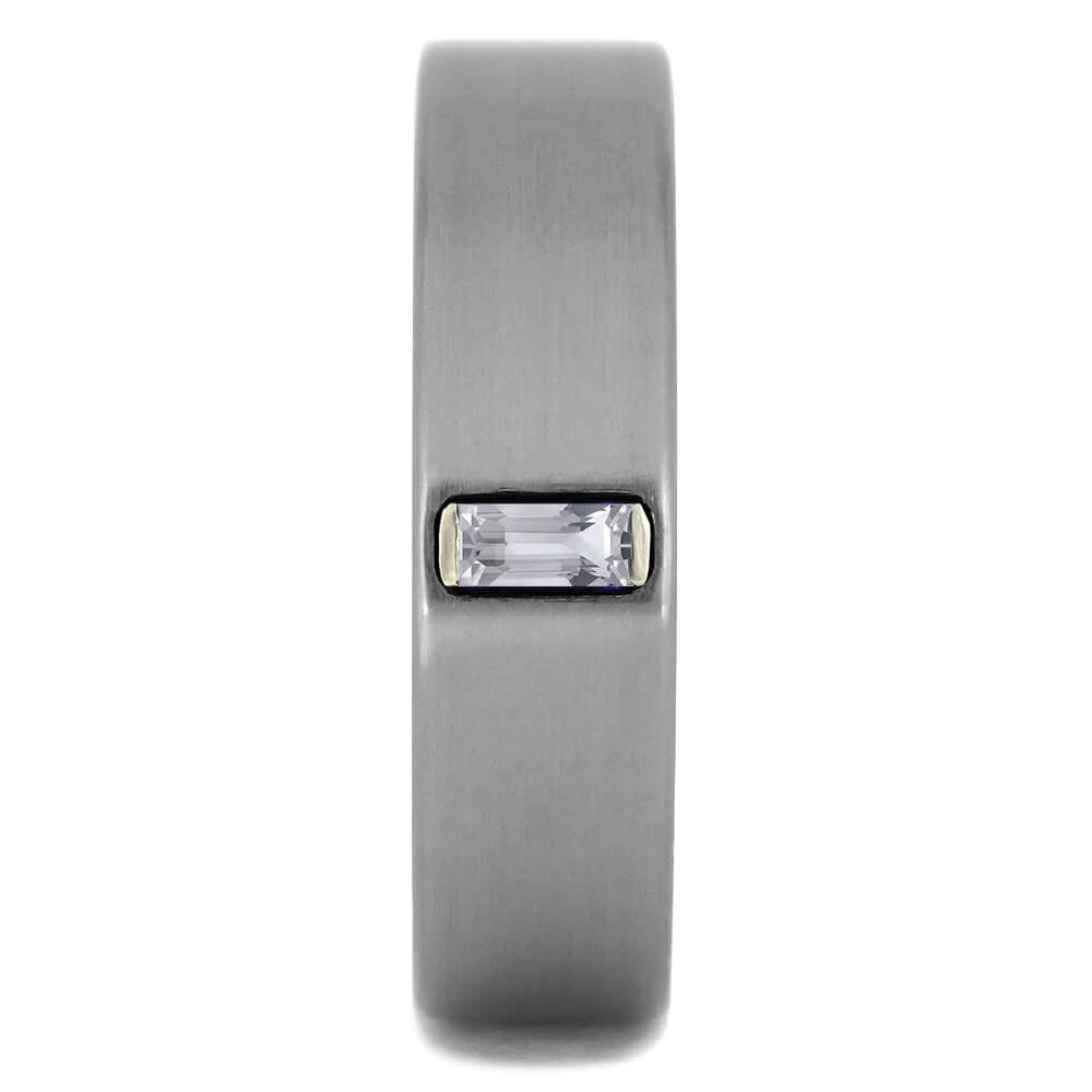 Whether you chose to give this sapphire ring to him as an engagement ring or for him to wear as a wedding ring, it will be the perfect band for him. The matte finish on this ring gives it the ultimate masculine look it deserves. The bezel setting is crafted in 14k white gold for the best durability and shine.