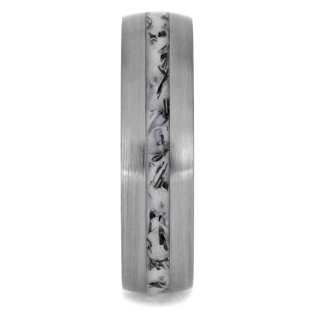 We pedal quality rings and this white enamel ring with crushed bicycle chain is no exception. This titanium wedding band has a comfort fit and a brushed finish. Gift this bike ring to the bike lover in your life and you know they will wear it with pride.
