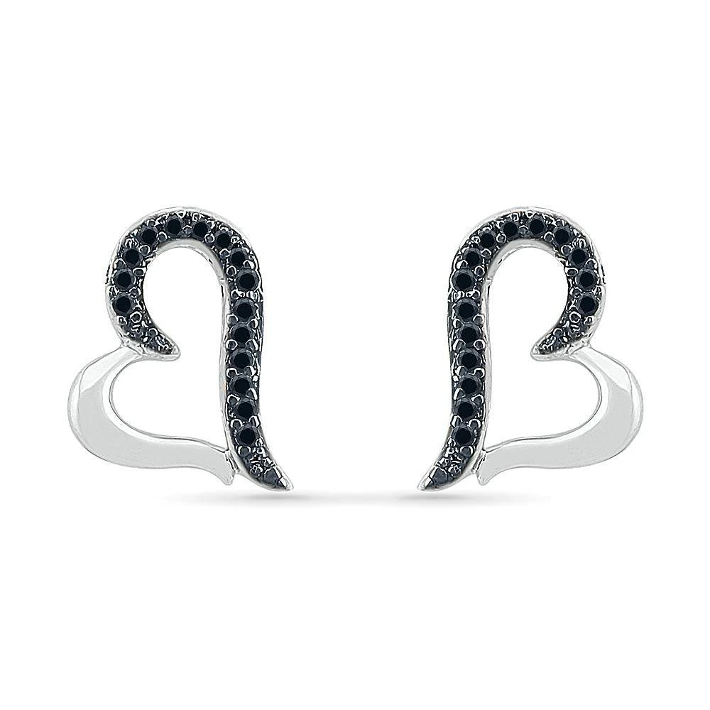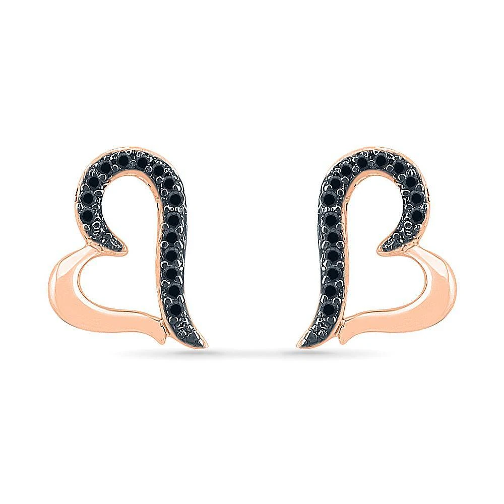 These tiny heart stud earrings are accented with black diamonds making them the perfect balance of bold and feminine. Crafted in polished pink gold or silver with push back closures.
