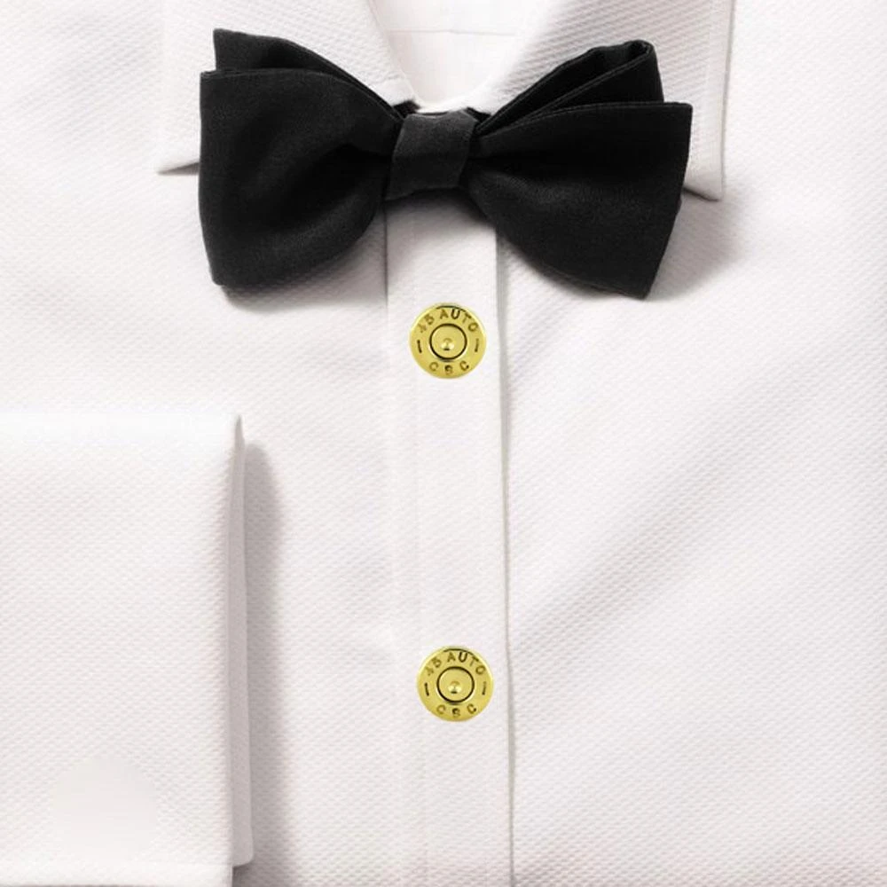 These incredible and unique bullet shirt studs make for an extraordinary wedding gift for your husband-to-be, a unique memento for your groomsmen, or a special gift for the gun enthusiast in your life. These tuxedo studs or stud sets made with used bullet shell casings are a great choice for an anniversary or wedding gift!