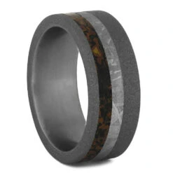 This camo ring is fashioned with durable titanium and lays two unique materials side by side. Twin inlays of camouflage print and deer antler combine for a rustic, nature-inspired look.