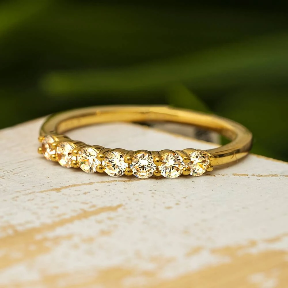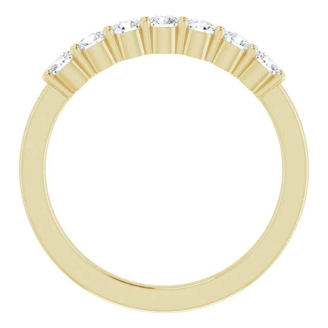 Seven stunning and sparkling natural diamonds sit in this anniversary band. Or, opt to wear this diamond ring along with a solitaire or multi-stone engagement ring. It could also be worn as part of a stackable ring style.