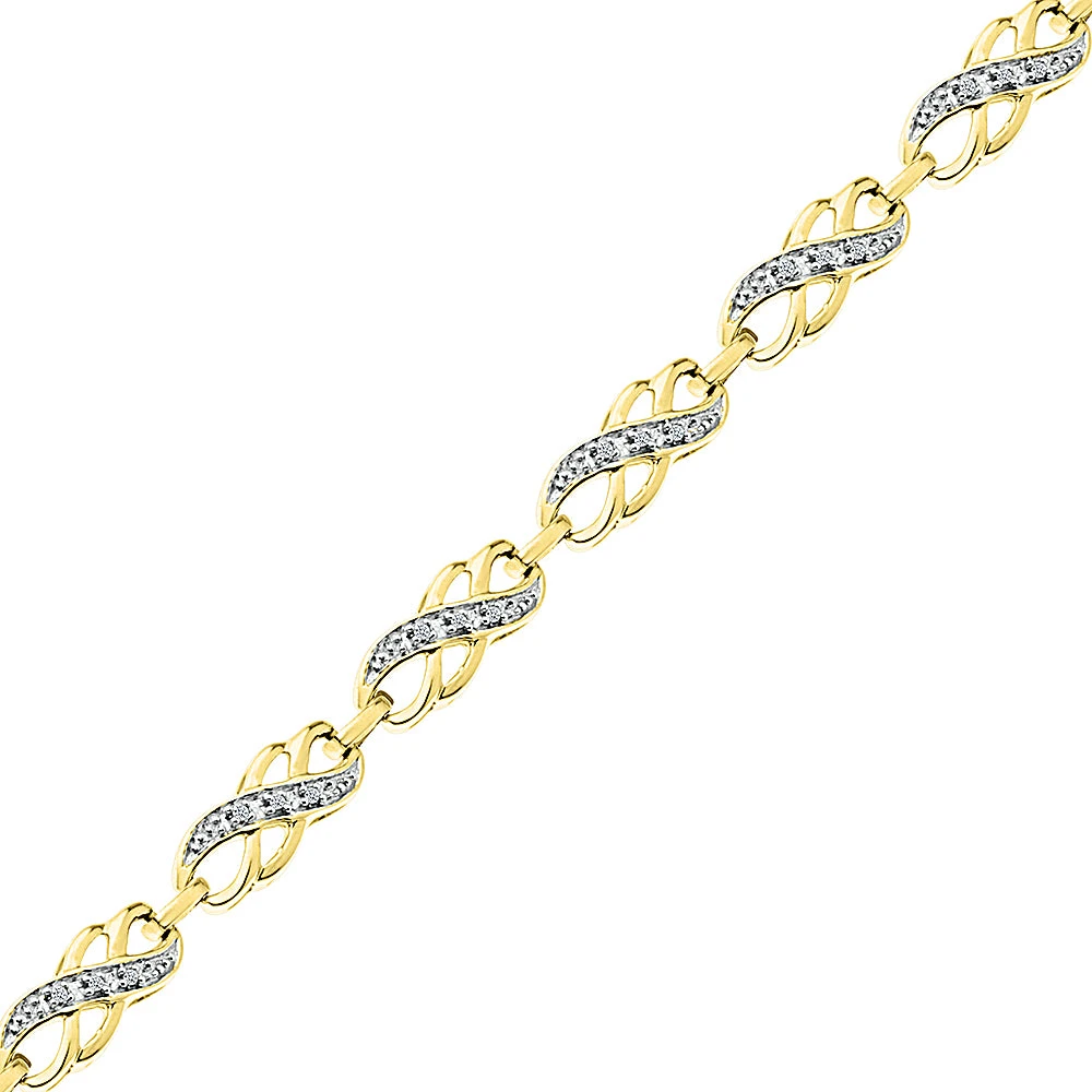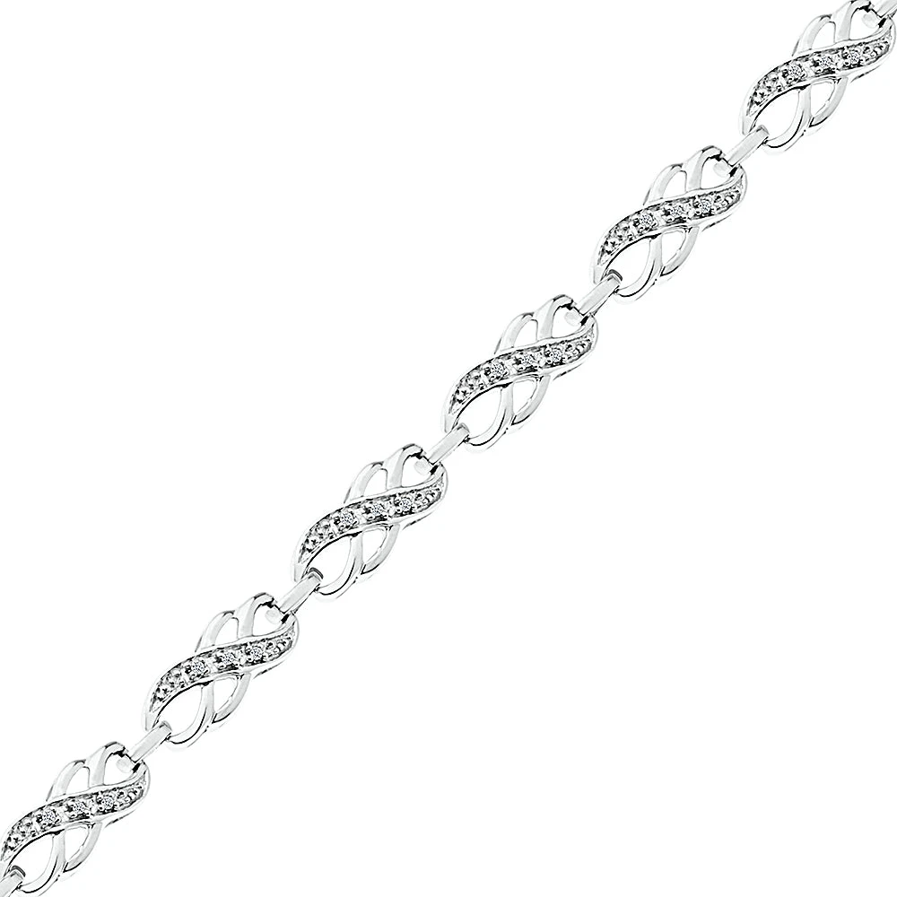 To infinity and beyond. This diamond infinity bracelet is a great reminder of your love for one another. Interlocking infinity symbols are glittered with diamonds, providing a high shine throughout the bracelet. Shining with 1/10 ct. t.w. of diamonds, this 7.25-inch bracelet has a tongue and groove clasp.