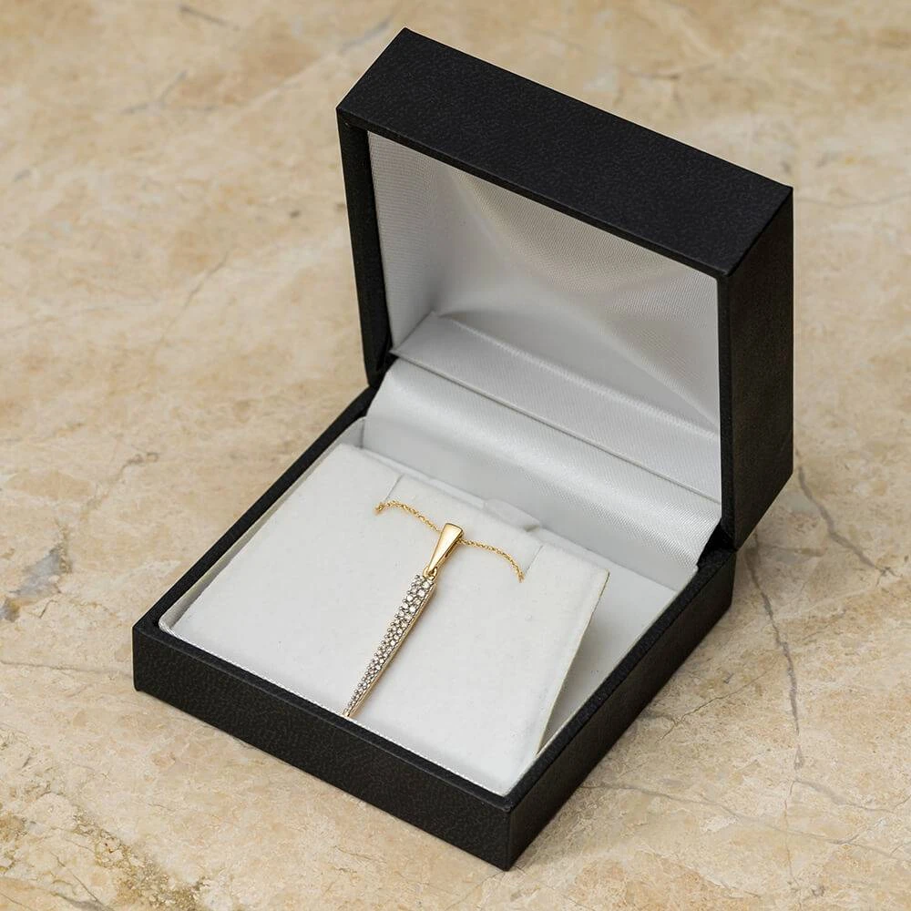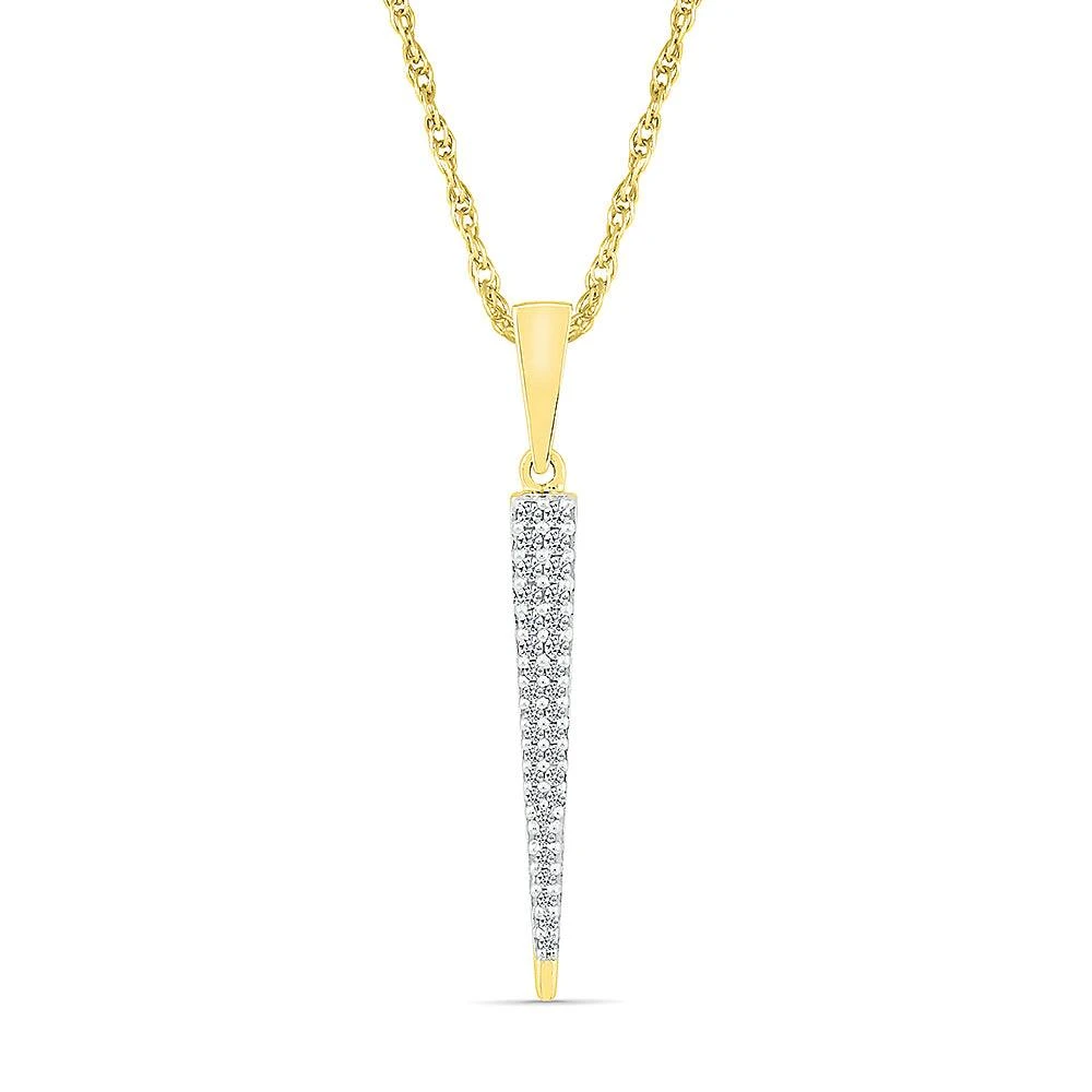 Crafted in your choice of yellow gold or sterling silver, this diamond statement pendant necklace is full of simplicity and shine. The length of the necklace is decorated with glistening diamonds for a classically elegant look. This diamond pendant necklace includes a rope chain.