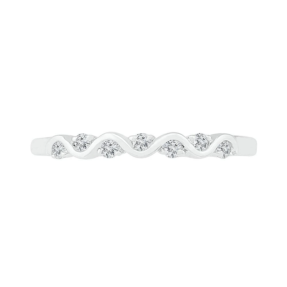 Alternating diamonds decorate this wedding band available in your choice of sterling silver or solid gold. This sparkling diamond wedding band is sure to compliment any traditional engagement ring. This unique diamond ring exudes romance and brilliance.
