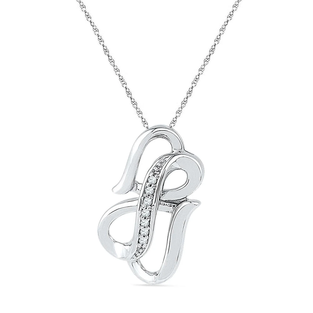 Crafted in your choice of sterling silver or gold, this double infinity necklace is full of symbolism. Two open hearts are displayed from a high polished rope chain, and are intertwined with an infinity symbol. Decorated in 0.03 ct. t.w. of diamonds, this necklace is symbolic of your hearts being forever one.
