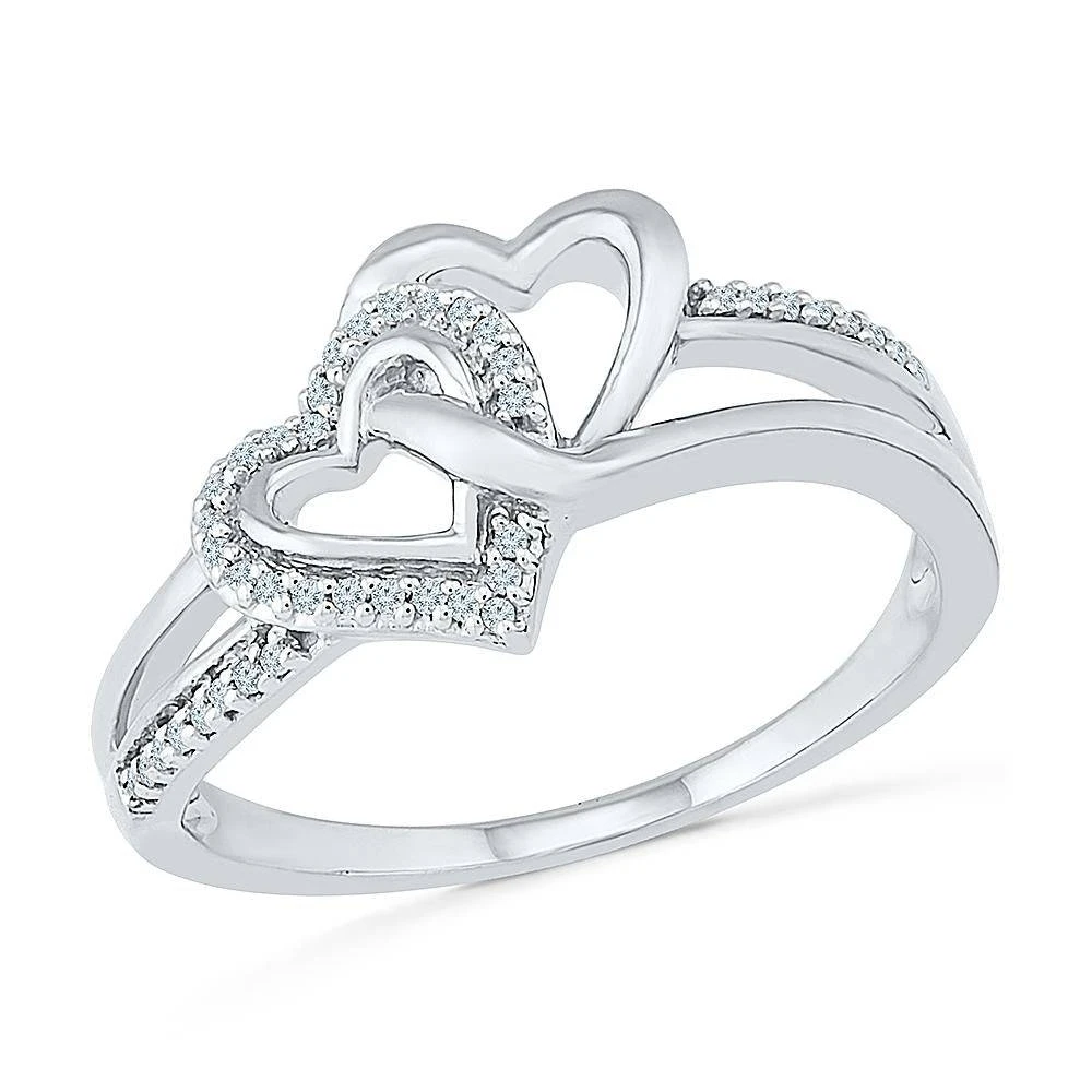 Two hearts intertwine in this promise ring! Diamond accents complete the heart-themed ring, complimented by the polished finish. This sparkling ring makes a perfect gift for an anniversary or birthday.