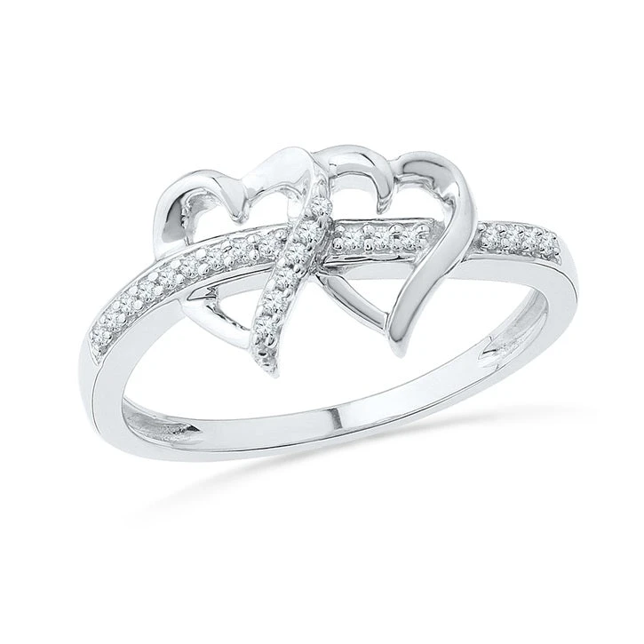Present her with this terrific double heart ring to show her that two hearts are better than one. This promise ring features 1/10 carat total weight of diamonds and is crafted in your preference of sterling silver or white gold.