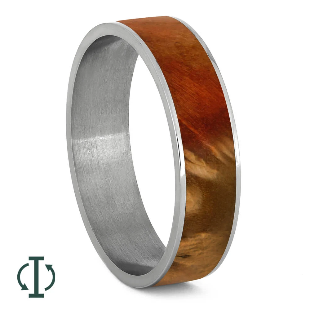 Want a component that will warm up your titanium twist and add a fiery contrast? Flame box elder burl really gets the job done. This natural component can be used in our interchangeable titanium twist rings, which allow you to customize your ring whenever you want.