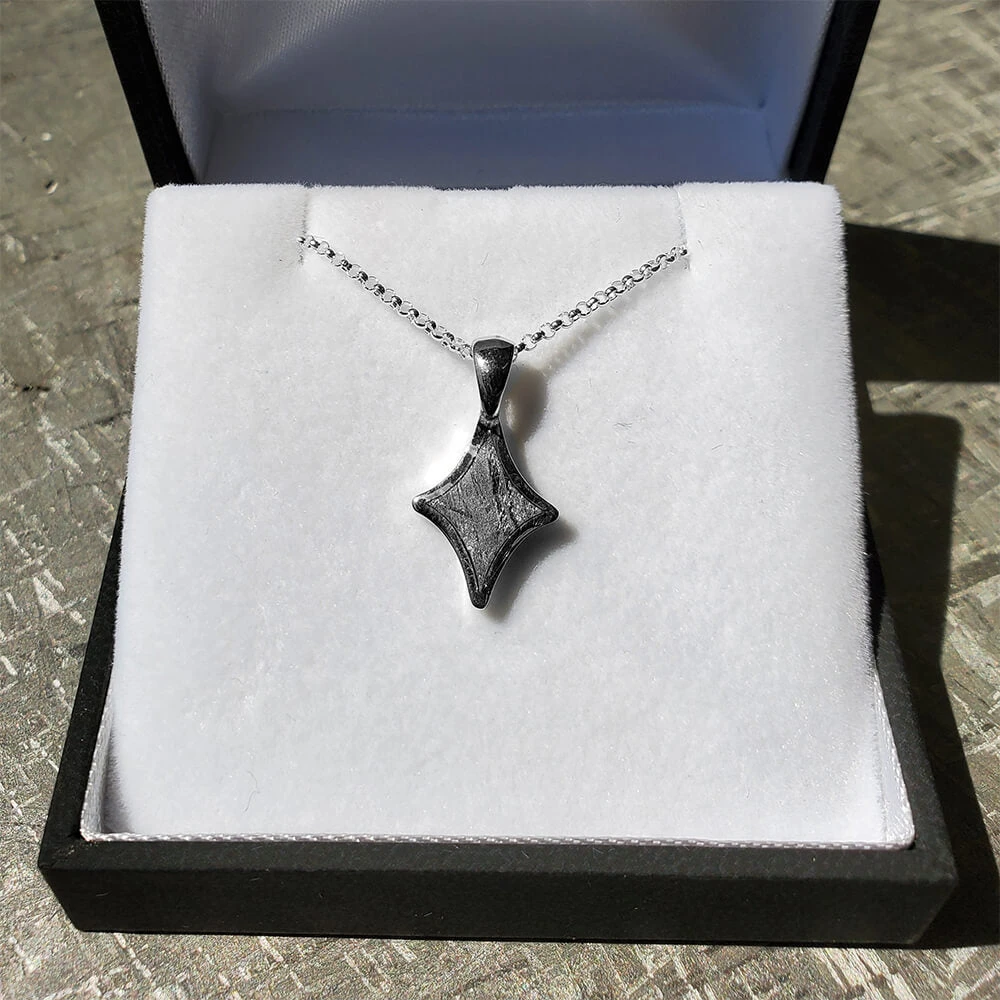 Get them a gift that is out of this world. Show them your love shines brighter than a star in the night sky. This meteorite star necklace in sterling silver will make the perfect gift for anyone who wants to add a cosmic twist to their attire.