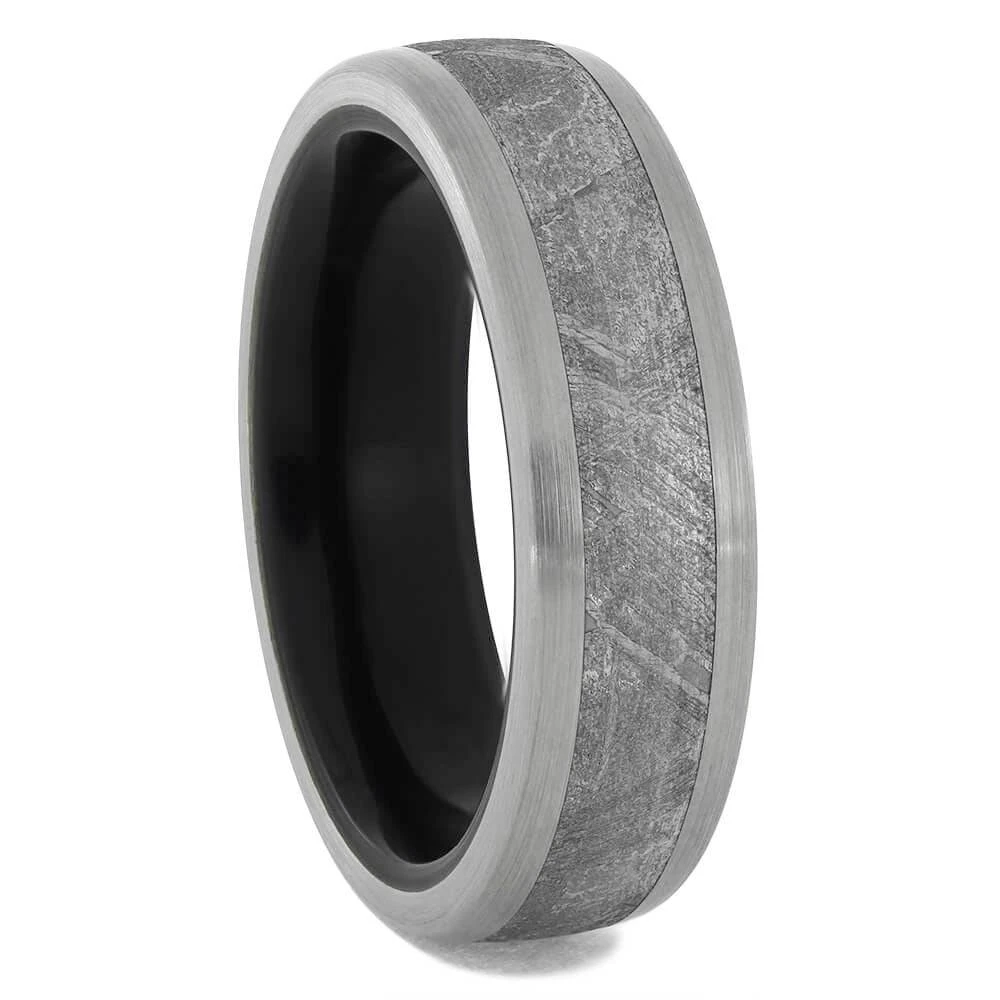 Allow us to present this spectacular Gibeon Meteorite and titanium ring with a twisted blue and red mokume gane sleeve. This handsome ring will demand attention and never go unnoticed.