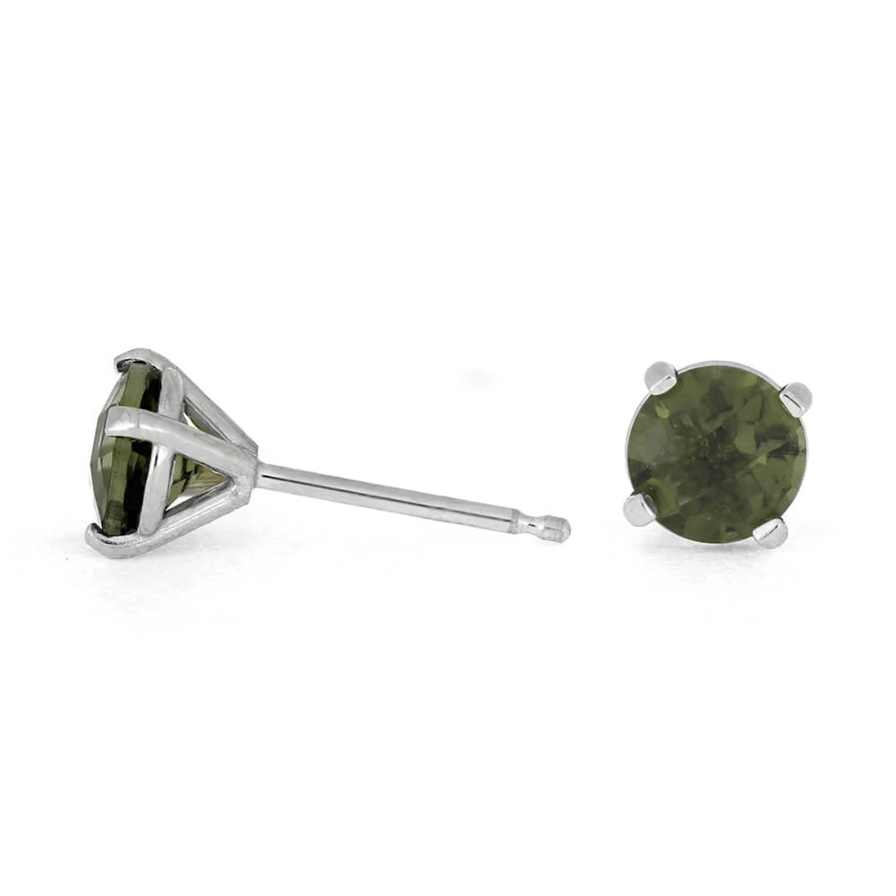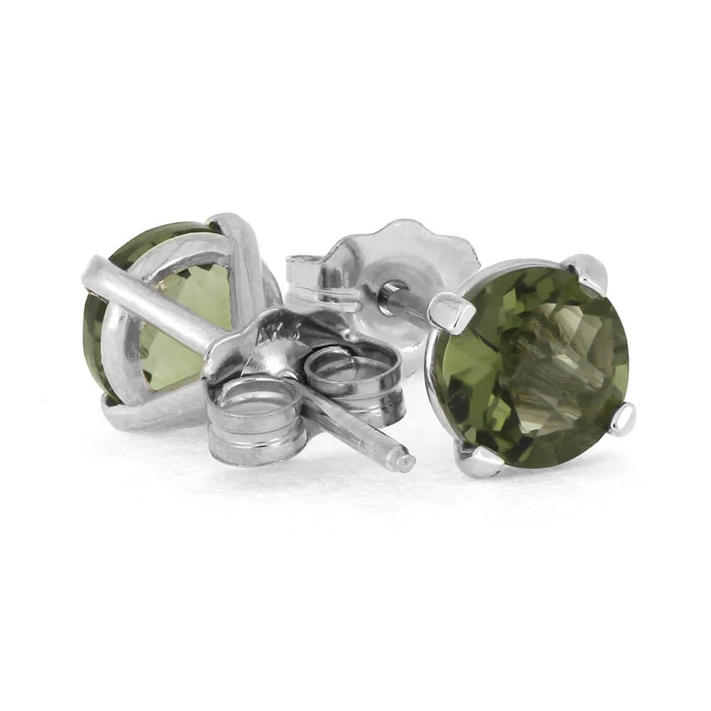 These olive green moldavite earrings have unique cosmic origins. Moldavite is formed in the heat and pressure of a meteor impact. Surprise your special someone with these stellar stud earrings today!
