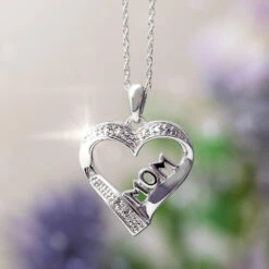 Everyday can be Mother’s day with this diamond heart mom necklace. Show your beloved mom just how much you love her with this sweet gesture that she is sure to adore. An open heart design is decorated with diamonds and spells mom off to the side. This pendant features 0.05 CT TW of diamonds and is displayed from a rope chain.