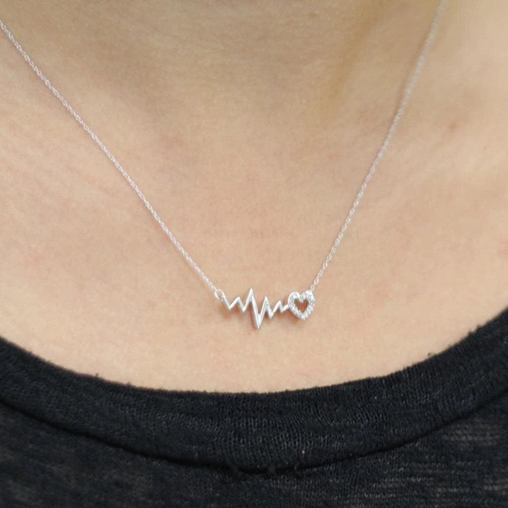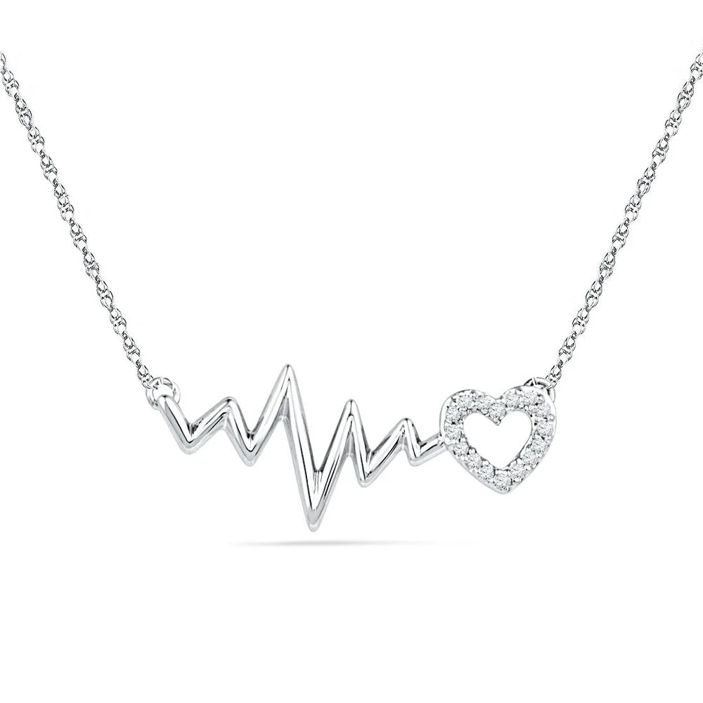 Crafted in your choice of sterling silver or gold, this heartbeat pendant necklace is quite charming. A beautifully crafted heartbeat shape is connected to an open heart that glitters with 0.05 ct. t.w. of diamonds. This necklace makes for a sweet gift for the one who makes your heart skip a beat.