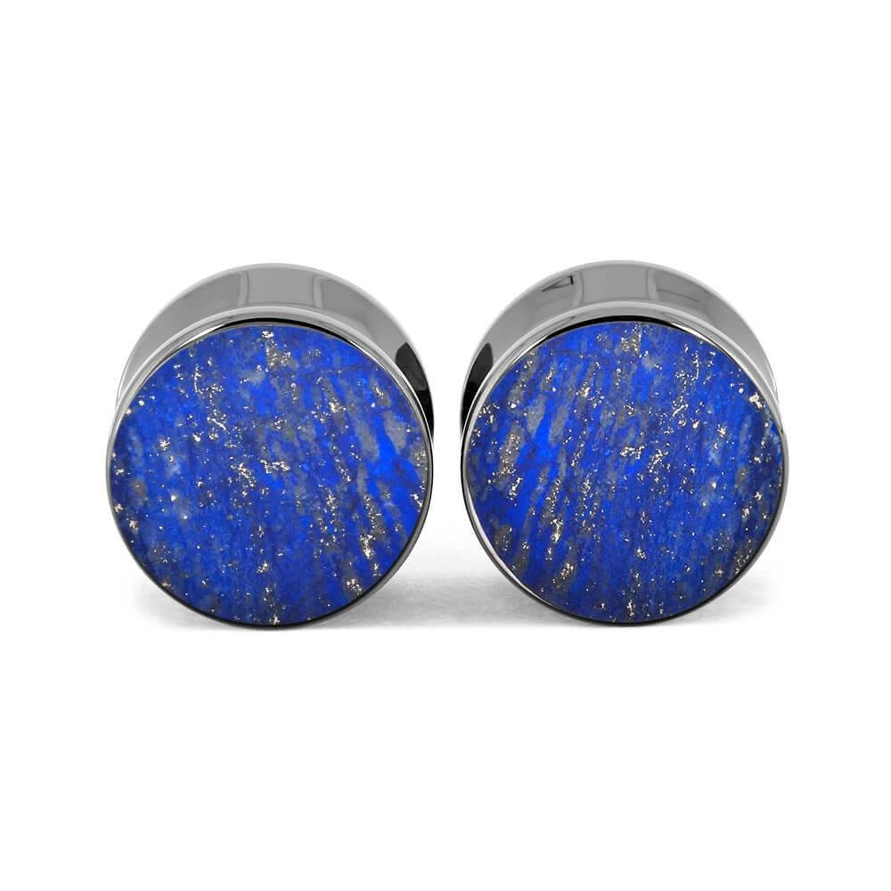 Naturally-vivid blue lapis lazuli decorates the inlays of these handmade titanium ear plugs for a bright, colorful look. Hand-crafted in sizes of 00g and up, these titanium and stone earrings are built to stand the test of time!