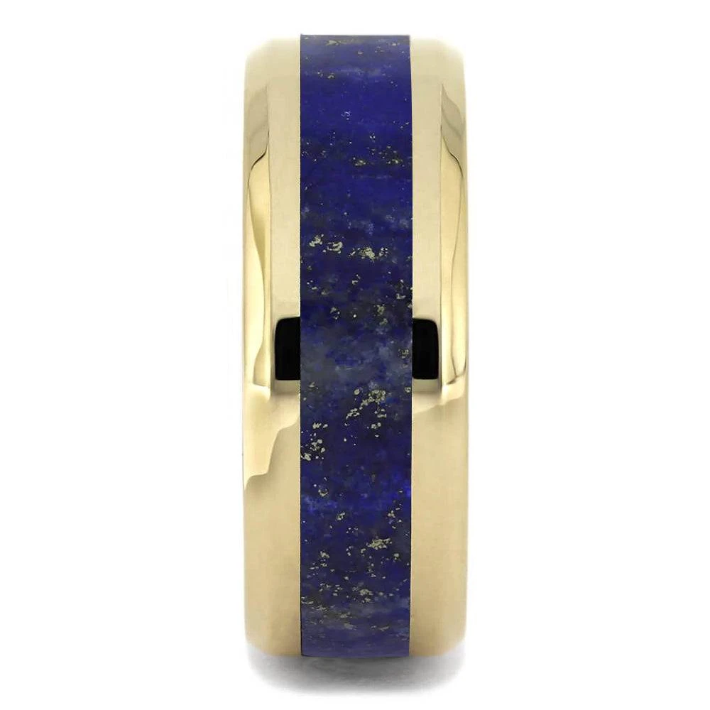Something blue for your wedding ring or as a beautiful, everyday accessory! This lapis lazuli ring is crafted in solid 14k yellow gold Genuine lapis is inlaid in polished gold perfection. A wonderful blue men’s wedding band choice.