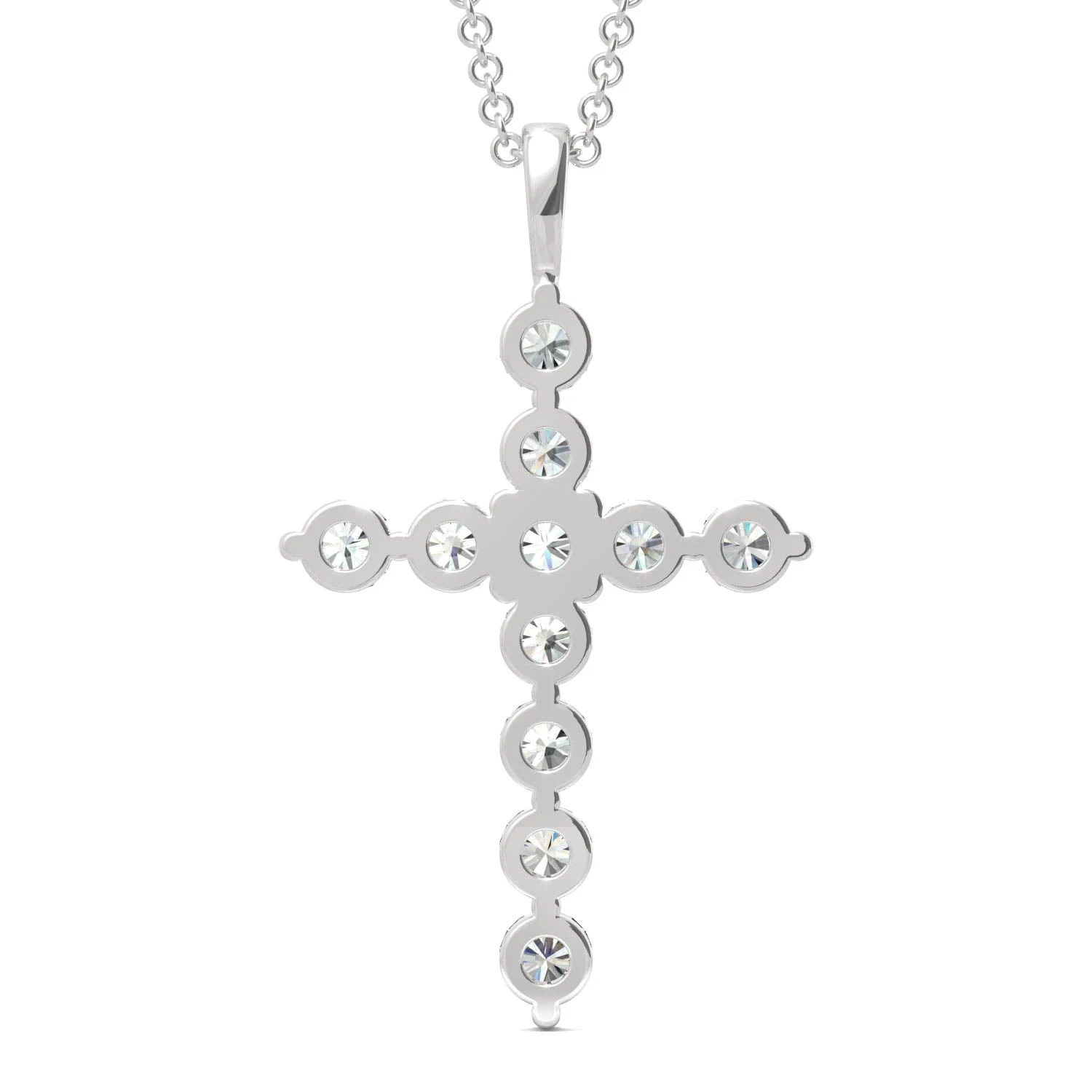 Featuring 11 moissanite by Charles & Colvard stones, this cross shaped necklace is crafted from 14k white gold.