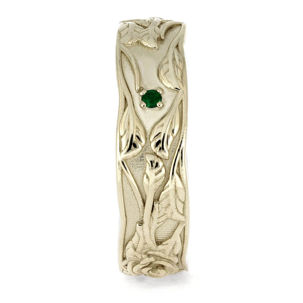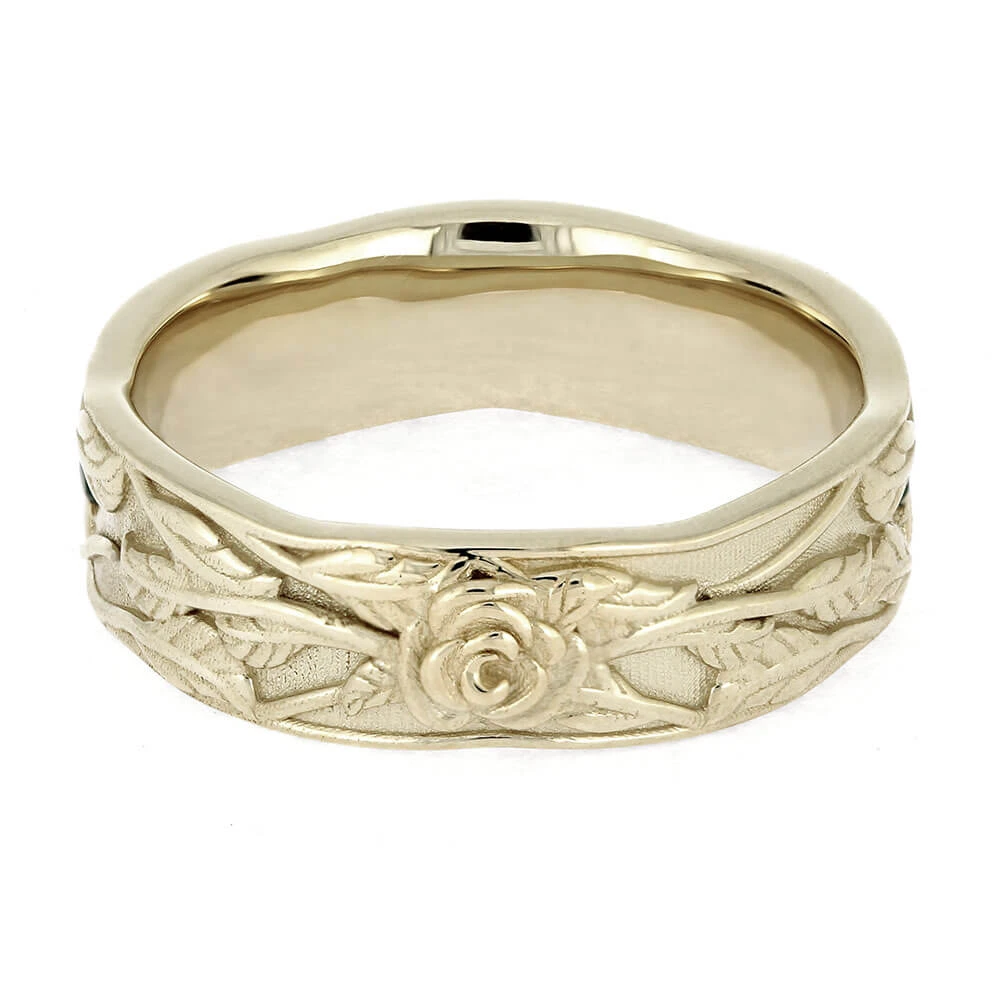 This Wedding Band by Jewelry by Johan seamlessly merges classic elegance with contemporary design. Meticulously crafted in 14k white gold, it displays intricate floral patterns all around the band. Keep a reminder of the natural world close at hand with this white gold ring!