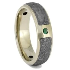 Lab Grown Diamond Men’s Wedding Band With Meteorite & Dino Bone