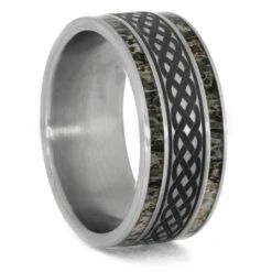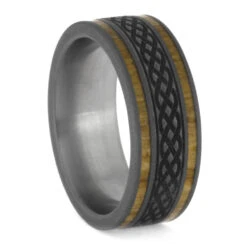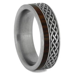 Celtic Eternity Band, Engraved Titanium Ring With Wood Inlay