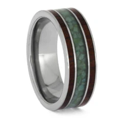 Chrysocolla And Green Box Elder Burl Wedding Band In Titanium