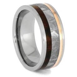 Blue Box Elder Burl Wood Wedding Band In Titanium With Copper Pinstripe
