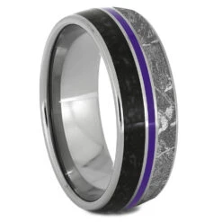 Meteorite Men’s Wedding Band With Dinosaur Bone And Ruby Redwood Sleeve