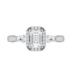 Emerald Cut Diamond Center Stone With Halo Engagement Ring