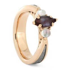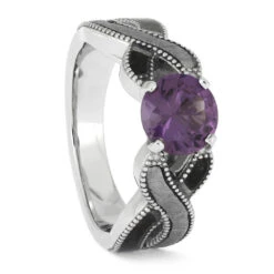 Amethyst Engagement Ring With Wavy Band Inlaid With Meteorite