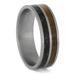 Wavy Wedding Band, Blue Box Elder & Koa Wood Beach Wedding Ring
