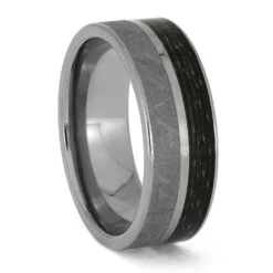 Meteorite & Fishing Line Wedding Band In Titanium