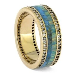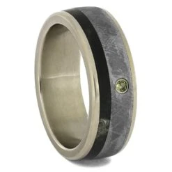 Lab Grown Diamond Men’s Wedding Band With Meteorite & Dino Bone