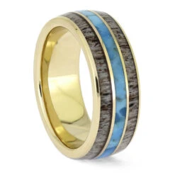 Blue Wedding Band With Turquoise And Wood With Zig Zag Pattern