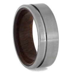 Wedding Band With Mahogany Wood Sleeve And Hammered Finish