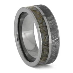 Premium Dinosaur Bone With Meteorite In Masculine Tungsten Band