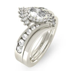 Engagement Ring With Meteorite And Moissanite Stones In White Gold