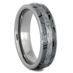 Blue Wedding Band With Turquoise And Wood With Zig Zag Pattern