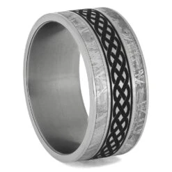 Men’s Celtic Knot Wedding Band With Meteorite And Brushed Finish