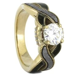 Blue Sapphire & Black Diamond Engagement Ring With Meteorite