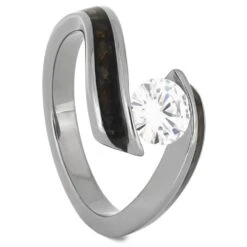 Tension Set Engagement Ring With Meteorite And Dinosaur Bone