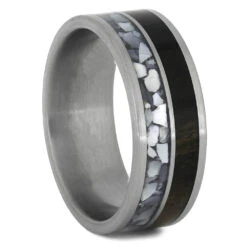 Honduran Rosewood Wedding Band With Crushed Mother Of Pearl Pinstripe