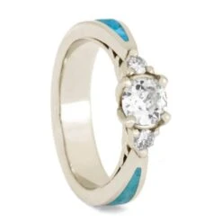 Turquoise Bridal Set, Three Stone Engagement Ring & Matching Band
