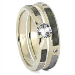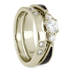 Dinosaur Bone Bridal Set With Three Stone Engagement Ring & Band
