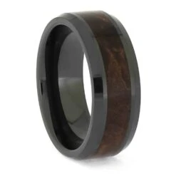Jade Wedding Band With Natural Redwood, Titanium Ring With Pinstripe