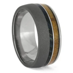 Unique Sandblasted And Polished Ring For Men With Wood Inlays