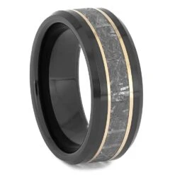 Black Stardust™ & Meteorite Wedding Band With Gold Pinstripe