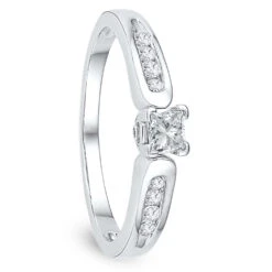 Moissanite Engagement Ring With Meteorite And Side Set Diamonds